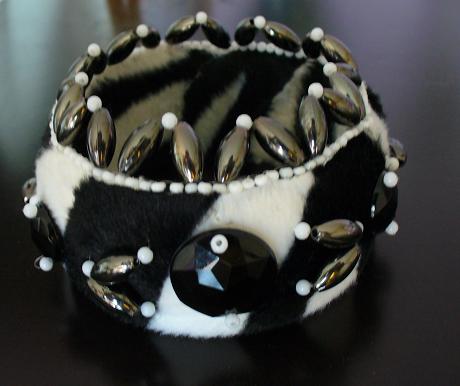 No i wymyśliłam taką bransoletkę, pierwotnie miał być na niej sutasz, ale stwierdziłam, że niepotrzebnie zakrył by większość "zeberki", więc wyszły takie ozdoby. Jest na drewnianej bazie więc jest sztywna i zaimpregnowana, a przede wszystkim taka milutka i włochata w dotyku:)